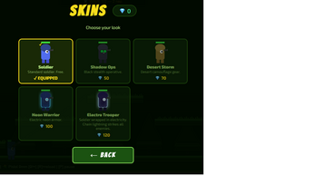 - 4 unlockable skins — each with a unique special ability (invisibility, wind blast, sentry gun, chain lightning)