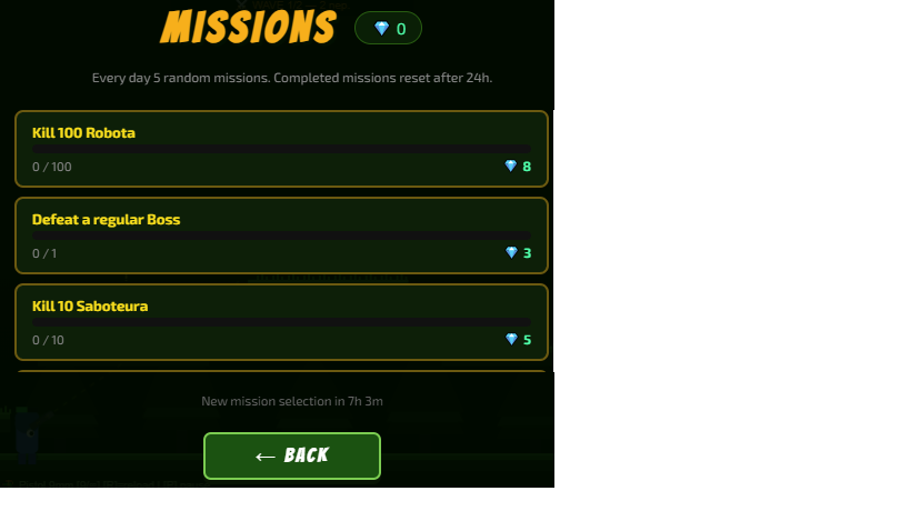- Daily missions — 5 missions that reset every 24 hours